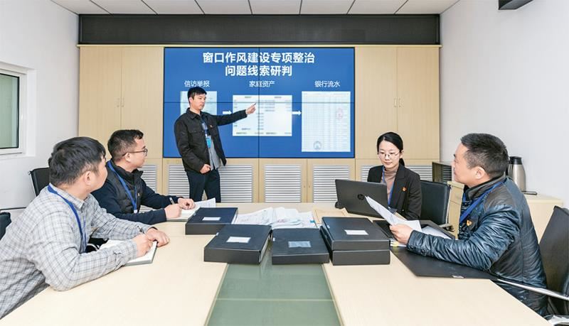 近年來,各地紀委監(jiān)委聚焦窗口服務領域作風建設,緊抓案件查辦,糾治不正之風和腐敗問題。圖為2025年3月,上海市青浦區(qū)紀檢監(jiān)察干部在研判問題線索。 中央紀委國家監(jiān)委新聞傳播中心供圖