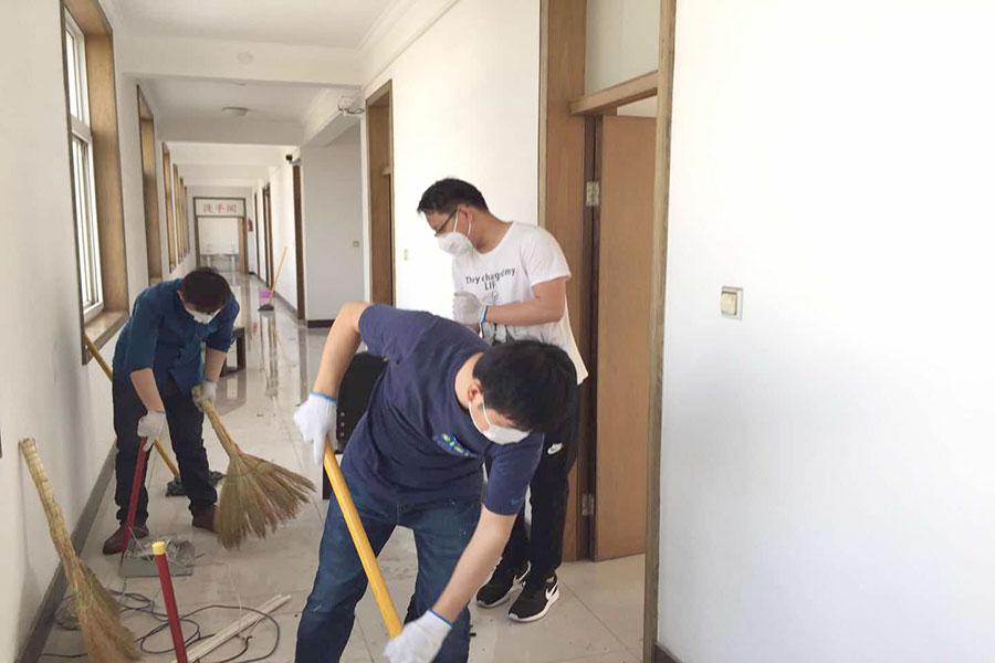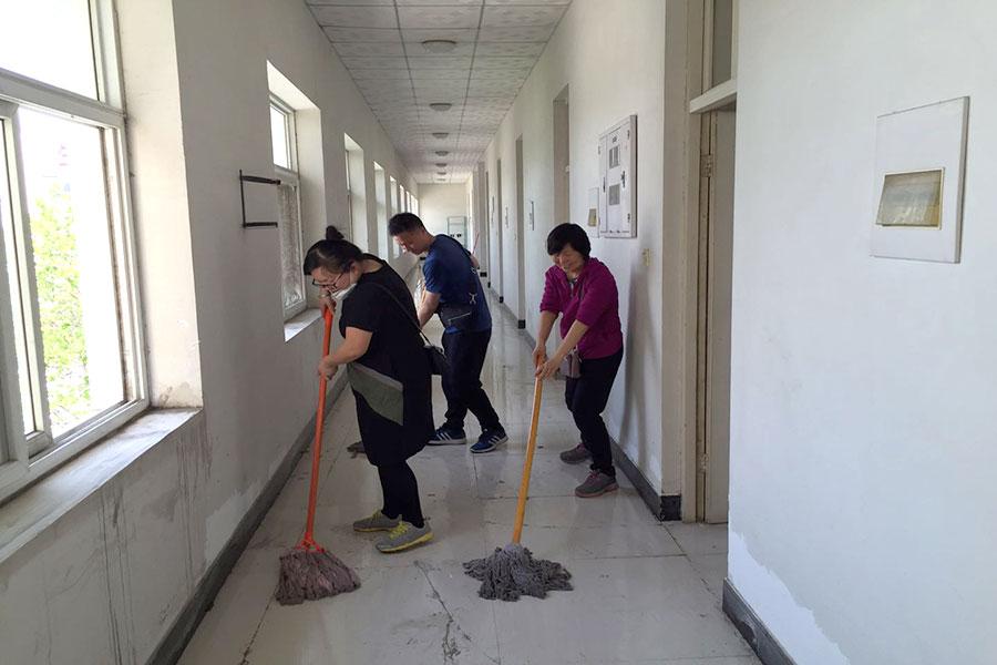 5個勞動小組隨即開展了火熱的勞動競賽,黨員領(lǐng)導(dǎo)干部身先士卒,各黨支部引領(lǐng)帶動,黨員模范帶頭。廢棄了十幾年的廠房,環(huán)境衛(wèi)生可想而知,大家把此次活動做為黨建活動的載體,努力在實踐中錘煉黨性,發(fā)揚連續(xù)作戰(zhàn)的精神,不畏臟累,勇挑重擔(dān),積極踐行黨員的奉獻精神和責(zé)任擔(dān)當(dāng)。特別一提的是陳彥儒、張恒兩位同志輕傷不下火線,始終堅持到任務(wù)全部完成。短短的2天時間,打掃面積近3000平方,所到之處窗明幾凈,為后續(xù)工作的順利開展奠定了基礎(chǔ)。充分展示了豫科物理人敢打硬仗,能打硬仗的良好品格和風(fēng)尚,樹立了良好的形象和口碑。