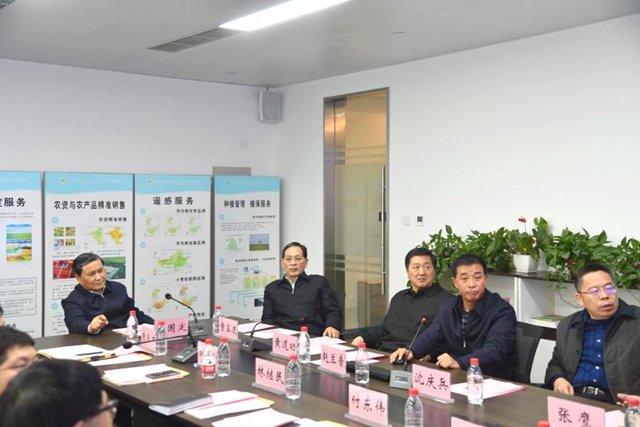 2月26日下午,副省長武國定一行到河南省農(nóng)業(yè)大數(shù)據(jù)應用產(chǎn)業(yè)技術研究院調(diào)研。省政府副秘書長朱良才、省農(nóng)業(yè)農(nóng)村廳副廳長劉保倉,省科學院院長童孟進、書記黃道功參加調(diào)研。