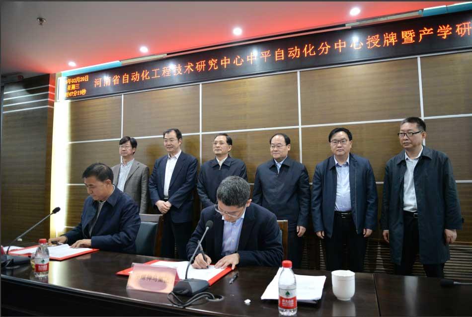 隨后,物理所與河南中平自動(dòng)化股份有限公司簽訂了產(chǎn)學(xué)研合作協(xié)議,張建國(guó)為省自動(dòng)化工程技術(shù)研究中心中平自動(dòng)化分中心主任劉素華頒發(fā)了聘書(shū),童孟進(jìn)、何守法、杜波共同為省自動(dòng)化工程技術(shù)研究中心中平自動(dòng)化分中心授牌。
