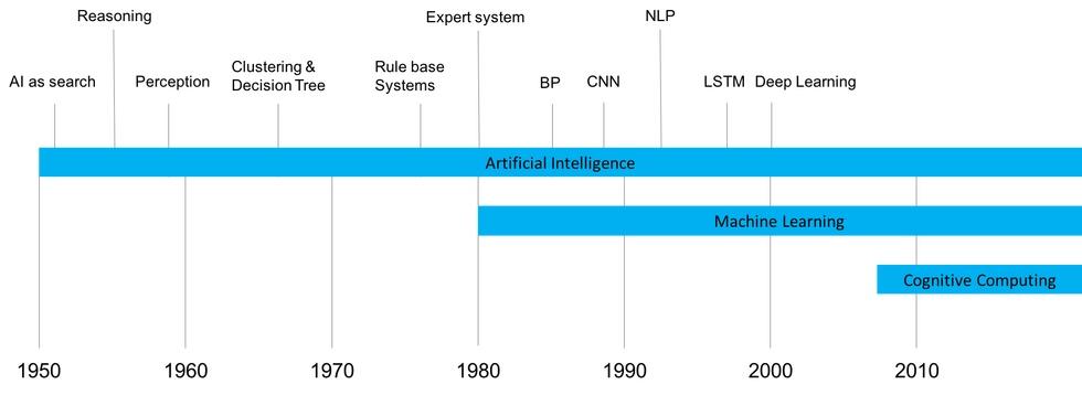1950 年代初期,人工智能聚焦在所謂的強人工智能,希望機器可以像人一樣完成任何智力任務(wù)。強人工智能的發(fā)展止步不前,導(dǎo)致了弱人工智能的出現(xiàn),即把人工智能技術(shù)應(yīng)用于更窄領(lǐng)域的問題。1980 年代之前,人工智能的研究一直被這兩種范式分割著,兩營相對。但是,1980 年左右,機器學(xué)習(xí)開始成為主流,它的目的是讓計算機具備學(xué)習(xí)和構(gòu)建模型的能力,從而它們可在特定領(lǐng)域做出預(yù)測等行為。