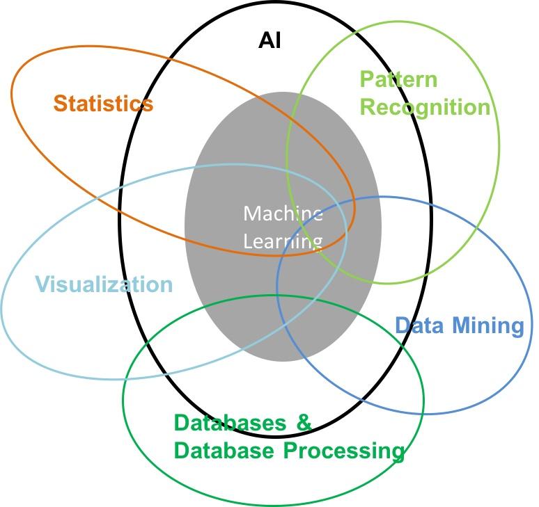 人工智能、機器學(xué)習(xí)、數(shù)據(jù)挖掘這些非常相關(guān)的術(shù)語或知識我們經(jīng)常看到,也見到很多關(guān)于三者關(guān)系的文章和討論。一般來說,人工智能是一個很大的研究領(lǐng)域;機器學(xué)習(xí)是人工智能的一個目標(biāo),提供很多算法;而數(shù)據(jù)挖掘是偏向算法應(yīng)用的部分。三者相輔相成,另外也需要其他領(lǐng)域的知識支持。具體關(guān)系請參考下圖。