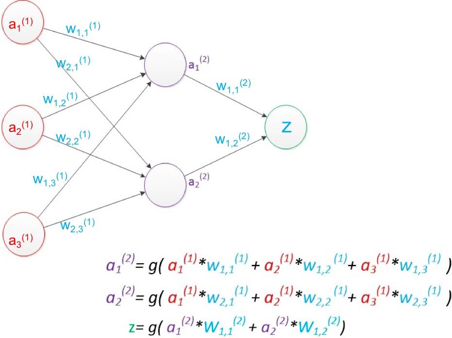 深度學(xué)習(xí)是機器學(xué)習(xí)中人工神經(jīng)網(wǎng)絡(luò)算法的延伸和發(fā)展,近期深度學(xué)習(xí)的研究非?;馃?,就在這里介紹一下神經(jīng)網(wǎng)絡(luò)和深度學(xué)習(xí)。先說兩層網(wǎng)絡(luò),如下圖,其中a是“單元”的值,w表示“連線”權(quán)重,g是激活函數(shù),一般為方便求導(dǎo)采用sigmoid函數(shù)。采用矩陣運算來簡化圖中公式:a(2) = g( a(1) * w(1) ), z = g( a(2) * w(2) )。設(shè)訓(xùn)練樣本的真實值為y,預(yù)測值為z,定義損失函數(shù) loss = (z – y)2,所有參數(shù)w優(yōu)化的目標(biāo)就是使對所有訓(xùn)練數(shù)據(jù)的損失和盡可能的小,此時這個問題就被轉(zhuǎn)化為一個優(yōu)化問題,常用梯度下降算法求解。一般使用反向傳播算法,從后往前逐層計算梯度,并最終求解各參數(shù)矩陣。