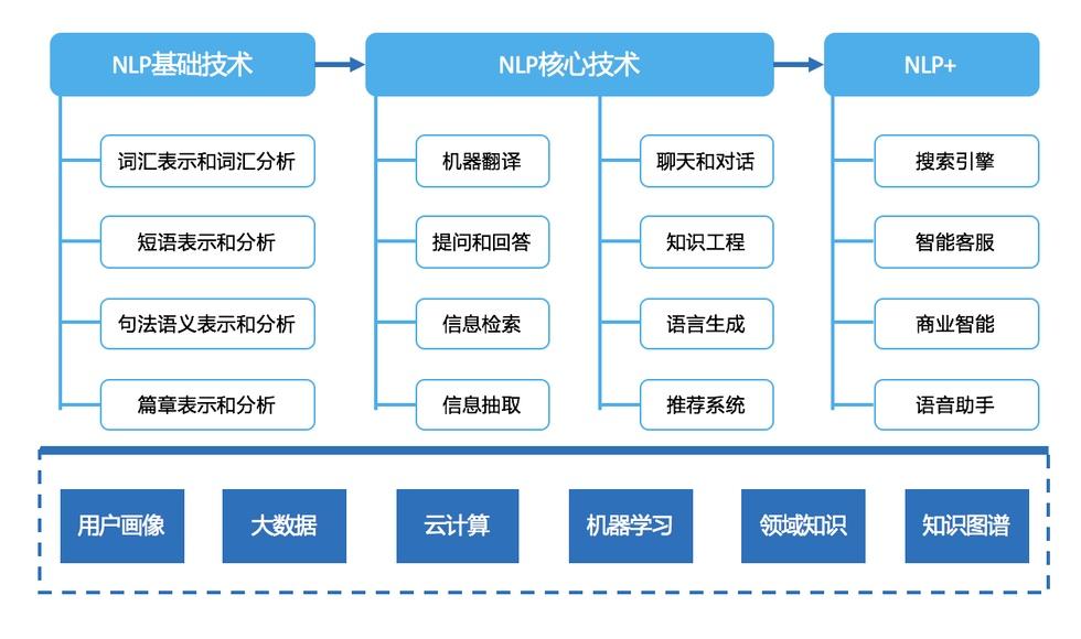 NLP是人工智能的另一個目標(biāo),用于分析、理解和生成自然語言,以方便人和計算機設(shè)備進行交流,以及人與人之間的交流。它的應(yīng)用領(lǐng)域包括:機器翻譯,文本、語音、圖片轉(zhuǎn)換,聊天機器人,自動摘要,情感分析,文本分類,信息提取等。以下給出了自然語言處理簡要的知識架構(gòu)圖。