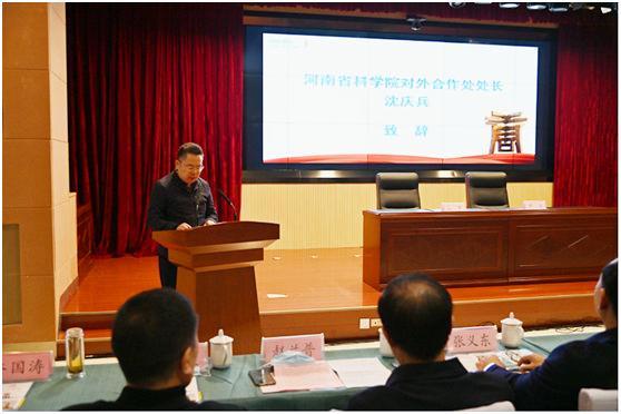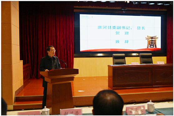 簽約儀式上,院對外合作處處長沈慶兵、公司董事長趙蘭普、唐河縣縣長賀迎分別致辭,并觀看了唐河縣情宣傳片。唐河縣人大常委會副主任狄付長代表縣委、縣政府與公司黨總支書記莊春生簽訂了《合作協(xié)議》。